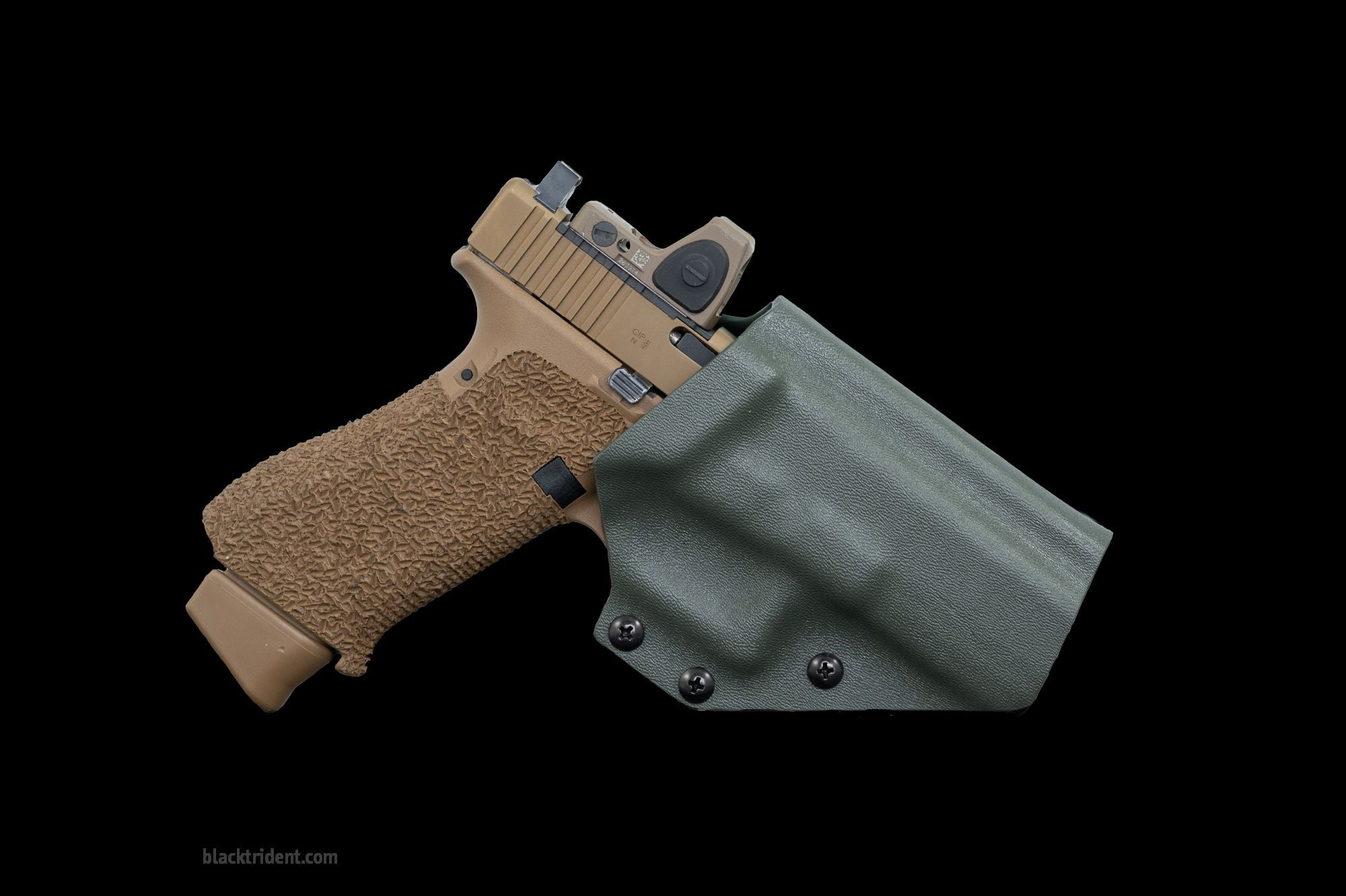 Holster müssen je nach Anwendungsbereich bestimmten Anforderungen gerecht werden. Um die wichtigsten Anwendungsbereiche abzudecken, haben wir zwei unterschiedliche Grundformen entwickelt. Die meisten unserer Kunden greifen auf diese Grundformen zurück und lassen das Holster auf ihre speziellen Wünschen hin customizen. Wir sind als Custom Manufaktur in der Lage, auch für exotische Waffen und Erlkönige das passende Holster zu entwerfen. Holster für unterschiedlichste Licht und Laserkombinationen oder andere Anbauteile werden von uns ebenso problemlos angefertigt.